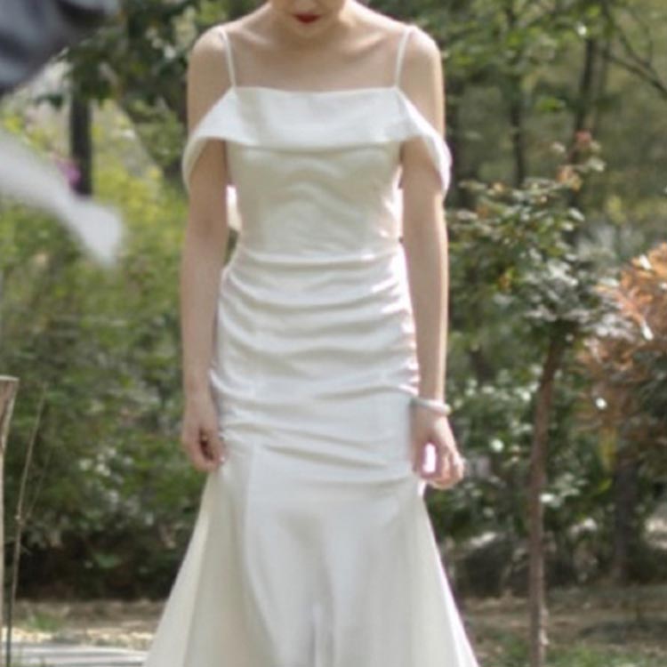 ウェディング ウェディング 海外 キャミソールドレス 結婚式 パーティードレス マーメイドライン フィッシュテール トレーン付きドレス ワンピース ウエディング 挙式 ホワイト 白 ウェディングドレス