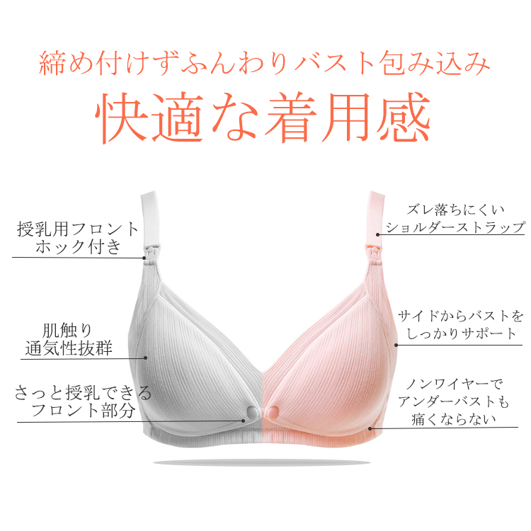 商品説明商品名 授乳ブラ ママの想いを商品化、だから、人気があります。 実際に出産育児を経験しているママだからこその発想が、実際の使いやすさ!を実現しました。 肌にあたる部分はコットン100%産前。産前・産後のデリケートなお肌にも優しい着け心地です。 脇高デザインなので横の余分なお肉をしっかりサポート。こぼれる事無く包み込むように美しいバストラインを作ります。 ンワイヤータイプのため、締め付け感がなくママのリラックスタイムや夜もバストを優しくサポートしてくれます。 授乳しやすいフロントオープンタイプ。さっといつでもどこでも授乳がすぐに出来てらくらく♪ ワンタッチ授乳、就寝時、外出先、さまざまなシーンで活躍 サイズ サイズ表ご参考 素材コットン+スパンデックス 生産国中国カラー ピンク、グレー、ベージュ、ブラウン、パープル セット内容 ブラジャー単品 注意 PC環境・光の具合により、色や素材のイメージが写真と若干異なる場合がございます。 モデル・写真に使用されているアクセサリー・小物は別途記載が無い限り付属いたしません。 商品に不良があった場合は、商品到着から5日以内にご連絡いただければご返金・交換対応させて頂きます。 商品のサイズは、全て平置きにて外寸を測定しております。 商品によっては+-0.5cm〜1cmの誤差が発生してしまう場合がございます。 該当商品は他店と在庫共有です。タイミングにより、在庫ズレが生じる場合がございます。予めご了承ください。2枚を購入、お得!欲しい場合以下お画像をクリックしてください。