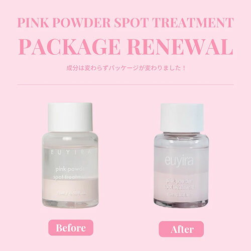 商品名 【正規品】 EUYIRA(ユイラ) ピンクパウダースポット トリートメント 15mL スポットケア ニキビ ニキビ予防 カラミン 肌トラブル 敏感肌 乾燥肌 韓国コスメ 韓国スキンケア その他EUYIRA(ユイラ) はコチラ 商品説明 <EUYIRA> ユイラは美容大国韓国で人気を集める化粧品ブランド。 日本の韓国ビューティファンの愛用率も高く、プロダクトそのものはもちろん、 クリーンでシックなビジュアルとディレクターであるキム・スミのナチュラルな美しさも人気の秘訣です。 ユイラのスキンケア商品は、自身の肌の持つ力にアプローチして健やかに育むことを目標としています。 自然由来の成分を中心に、理想的な肌の水分・油分の黄金バランスを求めて、強く美しい肌へ。 長時間使用するマスクのせいで、不安定になりがちな現代の肌。 乾燥肌なのに、肌トラブルが起こる方も多いのでは。 ユイラの「ピンクパウダースポットトリートメント」は 淡いピンク色のパウダーを綿棒にとって、気になる部分にちょこっと乗せて眠るだけ。 小さなボトルの中は肌トラブルのケアに優れた ピンクカラミンパウダーと安全性にも配慮した7つの天然由来成分を含む 保湿トナーの二層になっておりより効果的に美しい肌へと導きます。 ご使用方法 STEP01:寝る前の休息時、スキンケアの最後に使用します。 STEP02:お肌に使える清潔な綿棒を容器に入れてピンクパウダーをつけます。 STEP03:お肌の気になる部分に載せたあと、休息をとります。 ※注意※ 中身は分離した状態で使用してください。 中身が混ざっているとピンクパウダーの液状部分が分散して綿棒につきません。 成分 水、エタノール、カラミン、グリセリン、酸化チタン、プロパンジオール、ペンチレングリコール、ジメチルスルホン、ヒドロキシエチルウレア、BG、カンフル、チャ葉エキス、セイヨウキンミズヒキ葉エキス、エチルヘキシルグリセリン、1,2−ヘキサンジオール、グリチルリチン酸2K、パンテノール、フィチン酸Na、エゴマ葉エキス、オオアザミ種子エキス、セイヨウシロヤナギ樹皮エキス、コウゾ根エキス、プロポリスエキス、シミシフガダフリカ根エキス、メマツヨイグサ花エキス、ハナハッカ葉エキス、ヒノキ葉エキス、乳酸桿菌/ダイズ発酵エキス、スベリヒユエキス、ツボクサエキス、カシア樹皮エキス、オウゴン根エキス、グリコール酸 使用上の注意 こちらの商品は韓国本国より入荷している正規品となっておりますのでご安心ください。 ・品質を保つため、最少在庫で商品を管理しおります為、商品取り寄せに時間がかかる場合があります。 ・また、大量注文時は当店独自判断の上、注文をお断りする場合がありますのでご了承ください。 ・海外製品のため、シュリンプ割れの商品や日本語ラベルがないものもございます。予めご了承ください。 ・お肌に異常が生じてないかよく注意してご使用ください。 ・お肌に合わないときは、ご使用をおやめください。 ・ご使用中またはご使用後にお肌に赤味・はれ・かゆみ・刺激等の異常があらわれた場合はご使用を中止してください。そのまま使用を続けますと、症状を悪化させることがありますので、皮膚科専門医等にご相談されることをおすすめします。 ・傷やはれもの、湿疹等、異常のある部位にはお使いにならないでください。 ・目に入らないようにご注意ください。万一目に入った場合は擦らずにすぐに水かぬるま湯で洗い流してください。異常が残るときは、眼科医にご相談されることをおすすめします。 ・乳幼児の手の届かない場所に保管してください。 ・直射日光の当たる場所には保管しないでください。 ・本品は天然由来原料を配合しているため、稀に色・香りに差が生じる場合がありますが、品質には問題ございません。 <商品リニューアル・廃盤について> メーカー様の都合上、予告なしに商品が廃盤、またはリニューアルされる場合がありますので申し訳ございませんがご理解下さい。 楽天スーパーロジスティクス対応商品の注意点 楽天スーパーロジスティクス対応商品です! こちらの商品の発送を楽天物流センターに委託しております。 弊社休業日でも稼働しており、お客様がご注文された瞬間から自動的に発送手続き となるシステムの為、ご注文後のお客様キャンセル可能時間を超えた場合一切出来ません。 予めご了承頂き、お気をつけてご注文下さい。 お届け郵送業者は「日本郵政」となります。 なお配送途中の破損などの事故がございましたら、弊社までご連絡下さい。 自社倉庫と楽天物流倉庫の商品をご購入の場合は自社倉庫発送となるため あす楽でのお届は出来ません為翌営業日発送となります。