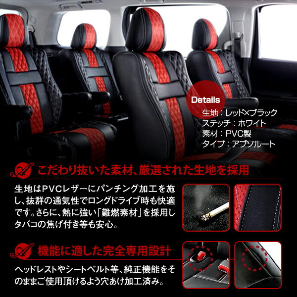 車種別専用設計 タバコの焦げ付きも安心!PVCレザーシートカバー【適合車種】・メーカー:ダイハツ・車種:タント・型式:L375S L385S・型タイプ:前期 後期・年式:H19/12〜H23/11・カラー:アブソルート レッド×ブラック ホワイトステッチ キルティング・定員:4・適合可能:L / GX / XスペシャルXリミテッド(リミテッドスペシャル・リミテッドセレクション含む)・確認事項/注意事項:※助手席バックテーブル使用可1列目アームレスト穴あけ加工要シートリフター付き車はリフター部穴あけ加工要※ヘッドレスト(H19/12〜H23/11用)と(H23/11〜用)の2種類同梱◆セット内容:1セット【商品説明】熱に強い難燃素材を採用しておりますのでタバコの焦げ付き等も安心!大切な愛車をお守り致します。さらに、PVCレザーを採用することにより、座り心地は抜群!高級車のような車内を演出します!送料:送料無料 (沖縄・離島・一部地域は別途送料加算となります)【注意事項】◆お客様都合による商品ページ未確認や商品加工後の返品・交換・キャンセルは一切行えません。◆メーカー発注商品や姉妹店舗との共有在庫商品の場合、商品により納期にお時間を頂く場合やご注文のタイミングによって欠品となる可能性が御座います。お急ぎの方は事前に納期確認のご連絡を下さい。◆交換等での工賃や車両の損害などはいかなる場合も保証対象外となります。◆必ず加工/取り付け前に動作確認をして下さい。取付・加工後・脱着工賃・取付時の不備・過失傷害・水漏れ等は保証致しかねます。◆お客様御自身での取付作業によるいかなる損害も責任を負いかねますのでご了承ください。◆付属品以外を利用しての取付けは自己責任で行って下さい。◆お車によっては加工が必要な場合がございます。◆保証期間は商品発送日から7日間の初期不良のみです。お荷物送り状が保証書の代わりとなります。◆当店はお取り付けに関するサポートは行なっておりません。技術ある整備工場にてお取付ください。◆モニターの環境によっては実際の商品と色見などが違う場合が御座います。◆商品仕様が予告なく変更される場合が御座います。◆輸入商品の場合は、すれ・傷等がある場合が御座います。◆海外製商品の場合は、必要に応じてコーキング処理を追加してください。◆社外品の場合、純正品では御座いませんので完全一致にはなりません。◆説明書は付属いたしません。◆車種対応については、グレードや年式によって適合が異なる場合がある為、必ずご購入前に現車にて形状・スペース・サイズのご確認の上、最終的な判断はお客様でお願いします。◆商品が到着しましたら、必ず商品内容をご確認ください。予めご了承下さい。・専用品では御座いますが純正品では御座いませんので、装着部分の形と完全一致形状とはなりません。・年式/グレード/型式が一致しましても、新車時のお車登録日により適合しない車種が御座います。・※適合情報はH28/7現在のデータとなります。時期により、マイナーチェンジ、モデルチェンジにより仕様が変更される場合が御座います。ご購入時にご不明な点が御座いましたら、お問合せ下さい。