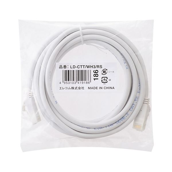 (まとめ) エレコム RoHS指令準拠 爪折れ防止CAT5E対応 LANケーブル 簡易パッケージ仕様 ホワイト 3m LD-CTT/WH3/RS 1本 【×30セット】