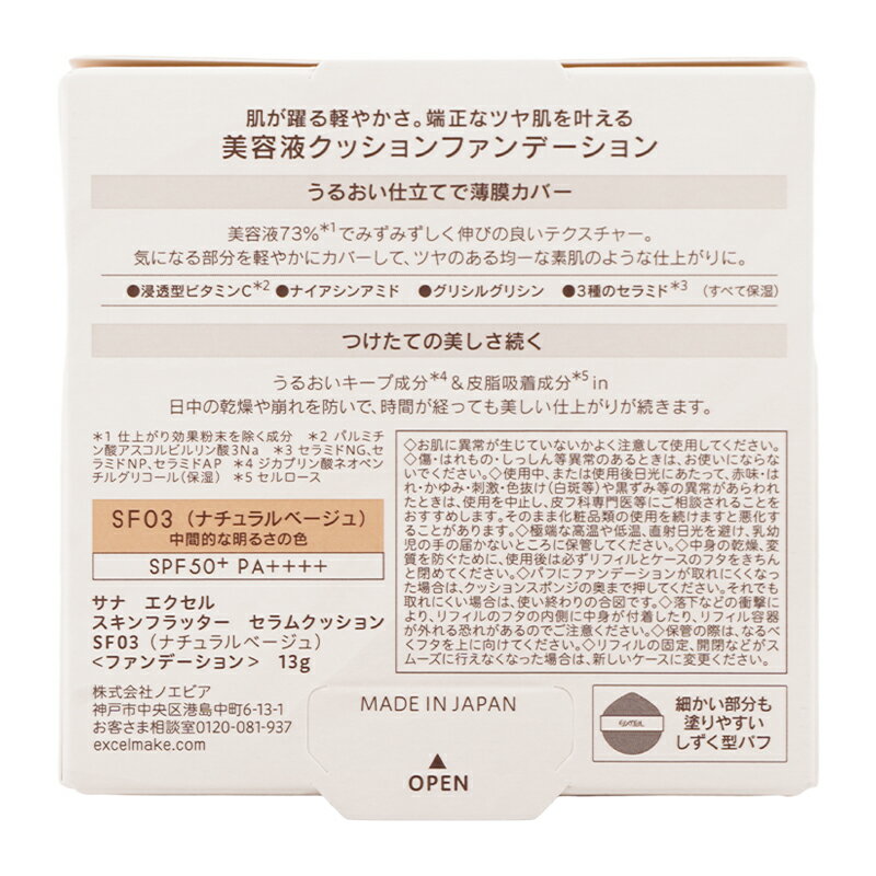 excel エクセル スキンフラッター セラムクッション SF03 ナチュラルベージュ SPF50+ PA++++ 13g 薄膜カバー 保湿 皮脂吸着成分[ギフトラッピング対応]