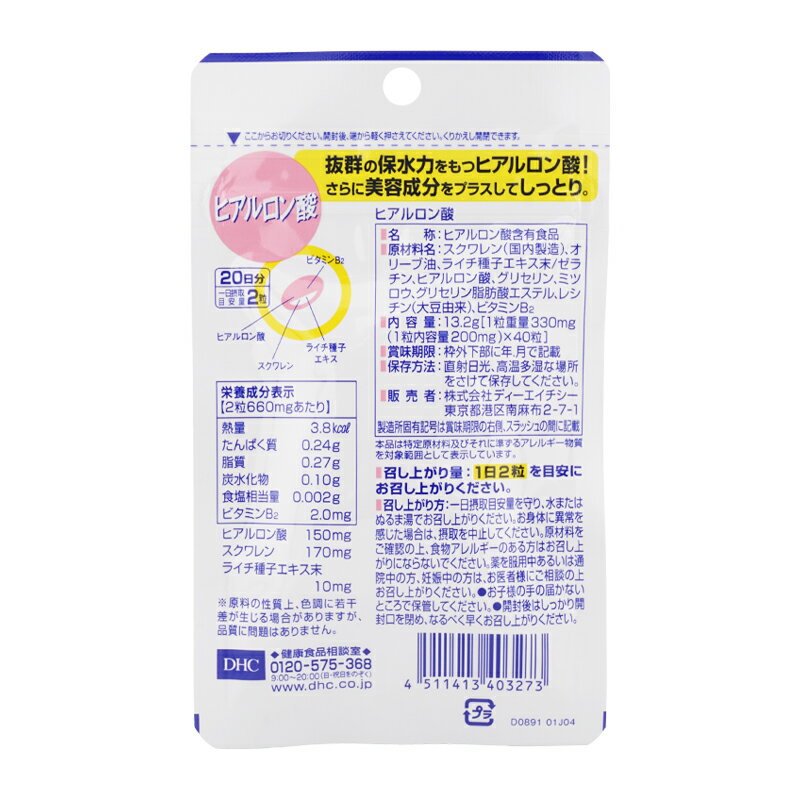 [3個セット]DHC ディーエイチシー ヒアルロン酸 20日分 40粒 栄養補助食品 サプリメント 健康食品 ヒアルロン酸含有食品 ビタミンB2[ギフトラッピング対応]