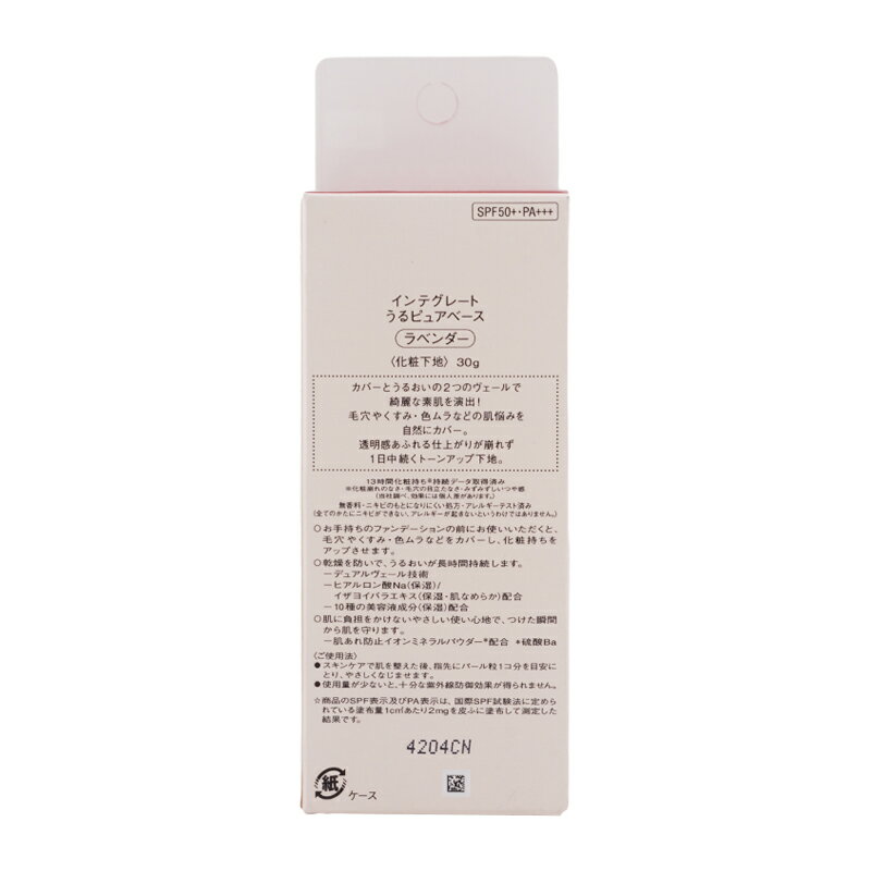 INTEGRATE インテグレート うるピュアベース SPF50+ PA+++ ラベンダー 30g 無香料 化粧下地 UVカット 日焼け止め ベースメイク[ギフトラッピング対応]