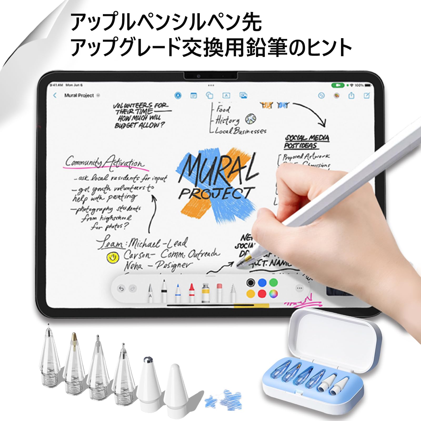 【当日出荷】アップルペンシル ペン先 apple pencil交換ペン先 6in1 アップグレード交換用鉛筆のヒント 傾き感知 Apple Pencil Pro/USB-C/第2/第1世代 対応 タッチペン 替え芯 iPad Pro 高感度 替え芯 アップル ヒント 収納ケース付 メール便送料無料