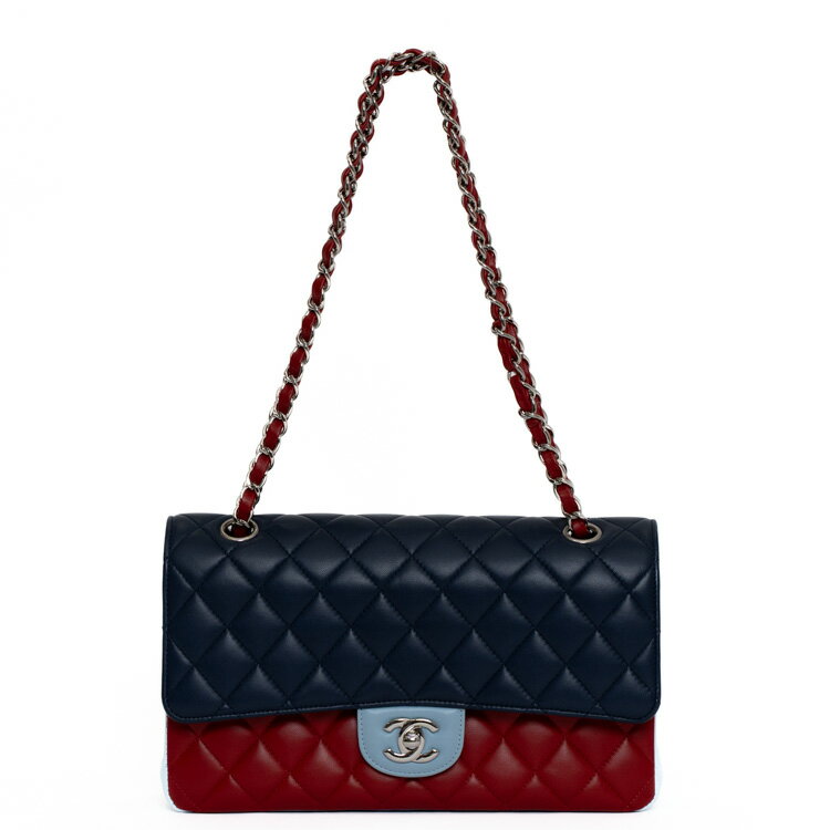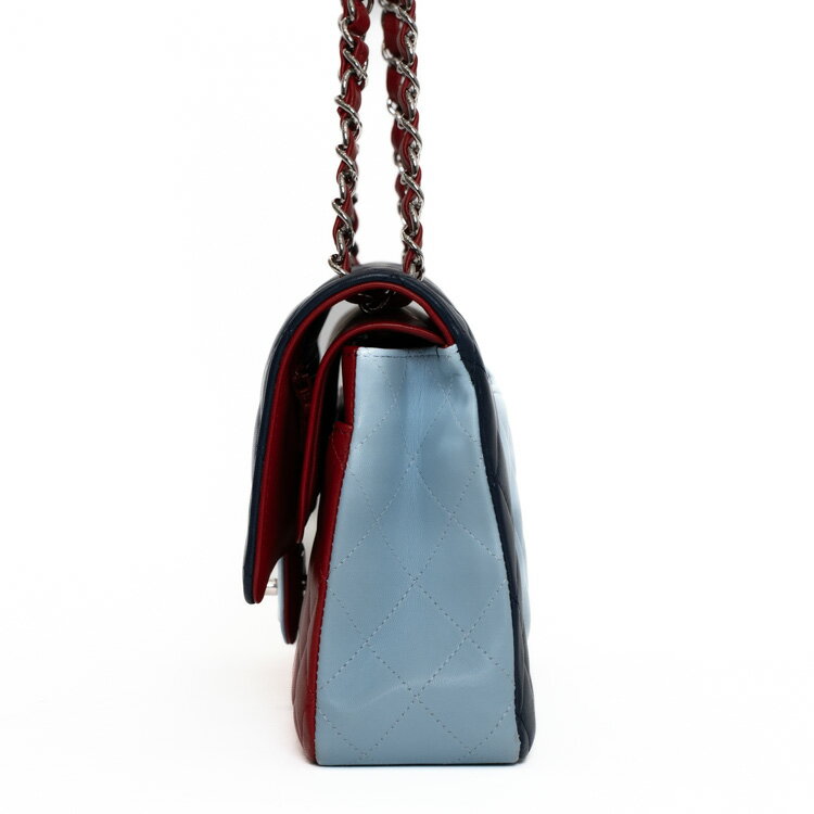 【中古】シャネル マトラッセ25 ダブルフラップ トリコロール レディースバッグ チェーンショルダー 22番台 2wayバッグ ラムスキン シルバー金具 赤 青 レッド×ブルー×ネイビー 4263263J