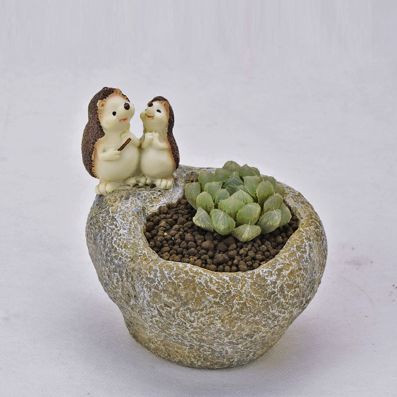 ハリネズミ インテリアポット 鉢カバー 動物 ハリネズミと池 プランター 植木鉢 ナチュラル おしゃれ ガーデニング 置物 オブジェ