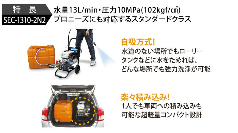 【法人のみ】スーパー工業(/AN) エンジン式高圧洗浄機(コンパクト&カート型) (No. 039566) [SEC-1310-2N2]