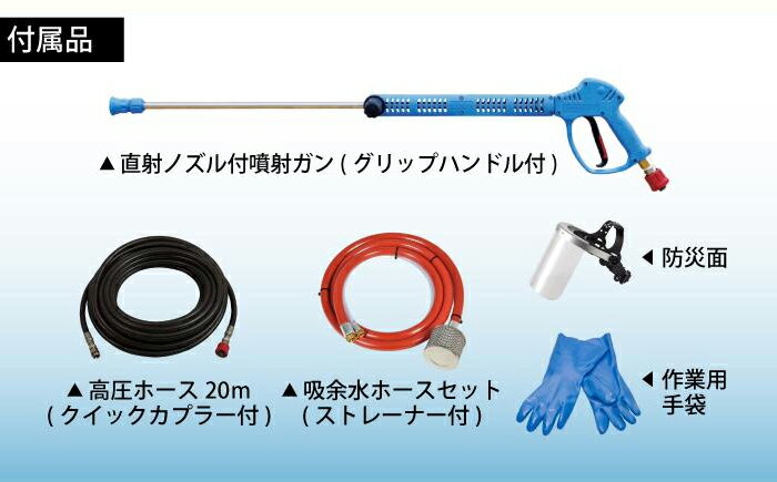 【メーカー直送品■納期都度確認】 ■機能・特徴 超高圧・大水量でスピード洗浄 大規模な作業に対応 ■用途 ・コンクリート型枠用合板の洗浄に。 ・断熱材(スタイロフォーム)の除去に。 ・敷鉄板の錆落としに。 ・敷鉄板の洗浄に。 ・土木工事用仮設配管の洗浄に。 ■仕様 ・吐出水量(L/min):18.0 ・吐出圧力(MPa):30.0 ・サイズ(mm):710(幅)×1185(奥行)×940(高さ) ・吐出水量(L/min)(50Hz/60Hz):18.0 ・吐出圧力(MPa)(50Hz/60Hz):30.0 ・回転数(min(の−1乗)):1210 ・出力(kW/min-1):11/1465(極数:4P) ・電圧(V):動力回路 200/操作回路 200 ・電流(A):42(絶縁:B種) ・起動方式:直入れ ・質量・質量単位:345kg ■セット内容 ・噴射ガンASY 35MPa 高圧クイックRL56青 ・噴口直射 1/8 MCP49 ・高圧ホースASY BH 3/8×20m 35MPa クイック ・吸水ホースASY 3/4×3m ストレーナー無 ・ストレーナー 三層構造 3/4 φ100×85 100メッシュ ・余水ホースASY 1/2×3m テトロンφ12 ・キャブタイヤASY14mm2×4芯×10m ・防災面 リケンFH2C ・ニトリル手袋 L PPM-6630