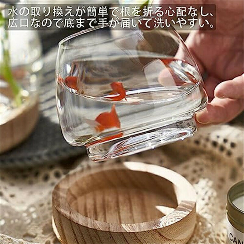 金魚鉢 おしゃれ 金魚 メダカ 水槽 室内 容器 鉢 ミニ水槽 ガラス金魚鉢 小さな水槽 金魚水槽 小さな丸い透明なガラス花瓶 木製ベース付きデスクトップ水槽 観賞植物ホルダー 水耕植物花瓶 おしゃれ 小シンク おしゃれ ガラス 室内花瓶 創作卓上金魚鉢 家庭用