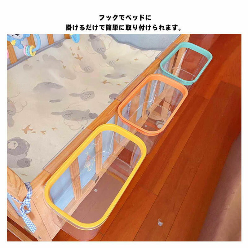 ベビーベッド 吊り 収納 ベビーベッド サイドポケット ベッドサイド 収納ボックス 収納ケース 哺乳瓶 おむつ収納 おもちゃ収納 ベビー 赤ちゃん 小物入れ 簡単 取り付け 便利 おしゃれ 出産祝い プレゼント