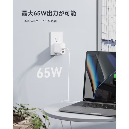独自技術「V-Dynamic」によって効率的な充電ができ、過電圧保護やショート防止、温度管理などの安全機能も搭載、長く安心して使える携帯充電器です(一般的な充電器に比べて、20倍の応答スピード、3倍軽量化、40%省エネ、3倍高電力密度化、3倍高速充電)複数ポートへの充電の最適配分と更なる安全性も実現しました・ノートPC向けの67W出力充電器67W出力によりMacBook/MacBook Pro/Airを最速で充電可能。・HelixDuo 充電iPhone 13とiPadを同時に最速で充電出来ます。●タイプ:TypeC×2+TypeA×1 ●折り畳み:○ ●入力:AC100-240V-1.5A(最大) ●出力:USB-C 1/2: 3.3-11V 5A(PPS)/5V 3A/9V 3A/ 12V 3A/15V 3A/20V 3.35A(最大67W) USB-A: 4.5V 5A/5V 4.5A/9V 3A/12V 3A/ 20V 1.8A モード 1: C1+C2=45W+18W モード 2: C1+A=45W+18W モード 3: C2+A=5V 3A(最大15W) モード 4: C1+(C2+A)=45W+15W ●サイズ:59×54×31mm ●重さ:128g ●ポート数:3