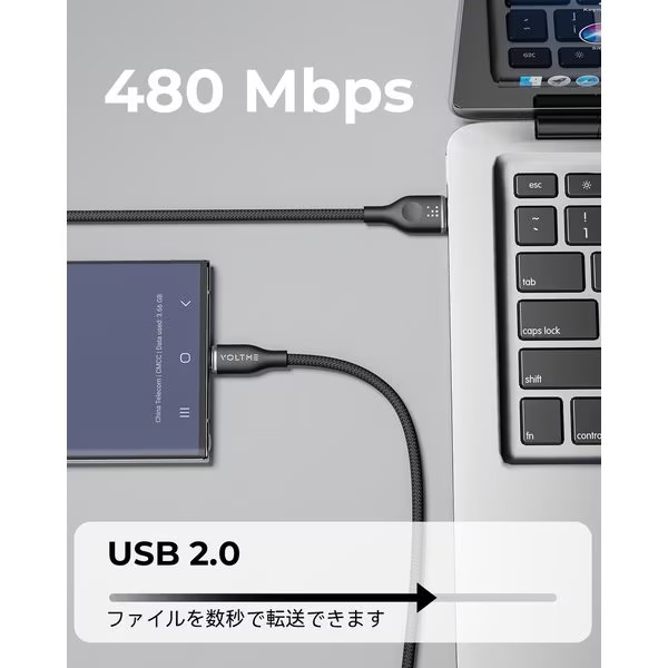 VOLTME Powerlink Rugg編み込みナイロン製、USB C to USB C 60W 1.8M USB2.0 Type C 充電ケーブルMacBook Pro 2020、iPad Pro 2020、iPad Air、Samsung S22 Ultra、Switchを急速充電可能・高い耐久性2,5000回の折り曲げテストを実施したVOLTME USB ケーブルは一般的なケーブルより30倍以上の持続力を持ちます・60W充電最大出力100Wの高出力で、スマートフォン、タブレット端末、ノートPC等のUSB-C端子機器にフルスピード充電が可能です●タイプ:TypeC + TypeC 3A●ワット:60W●長さ:1.8m●データ転送:480Mbps●特徴:頑丈/ナイロン製 高耐久