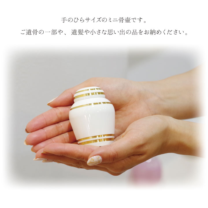 やわらかな曲線と落ち着いたたたずまいが、大切な故人様を包みます。 もっと一緒にいたい、そばに感じていたい・・・という想いは、大切な方を亡くされた方が感じる、ごく自然なお気持ちだと思います。 こちらの骨壷は、ご遺骨や遺品などを身近に置いて供養する「手元供養」に最適なご供養品です。 思い思いの形で、故人様をご供養なさってください。 インテリアにも合わせやすいデザイン・お色味ですので、故人様が好きだった場所にご安置いただくのもひとつ。 お仏壇にお納めいただくなど、和洋のデザインも問わずご安置いただけると思います。 専任のデザイナーがデザイン。さらに数十のサンプルより商品となるデザインを厳選しました。 型から抜いたミニ骨壷の生地を削り出します。左側は削り前、右側は削り後。光沢の違いをご覧ください。 職人が1つ1つ想いをこめて手作りした、なめらかな触り心地です。 金属製の骨壷は、冷たくて悲しくなりそう…とお思いの方もいらっしゃると思いますが、 ディアファミリーの店舗では「地震の時や、台風・豪雨での避難の時などに、仮に落としてしまっても割れたり中身が出てしまったりする心配がないから選びました」という方も増えています。 大事な故人様のために、たくさんの商品の中から納得できるご供養品をお選びくださいね。 商品名 シンプルミニ骨壷 スカイブルー 商品番号:f00436-2 商品詳細 ■サイズ:(外寸)直径5cm×高さ6.7cm、口径2.5cm ■重量:270g ■容量:50cc ■材質:真鍮 ■塗装:ウレタン塗装 底面にはフェルトが貼られており、置く場所に傷をつけません。 ご使用方法 小さなご遺骨はそのままお納めください。 納まるお骨がないときは、小さめのお骨を選んで、紙に挟んでそっと押してつぶしてください。 ※防水仕様ではございませんので、水がかかるような場所でのご使用はおやめください。 ※しっかりと閉まるねじ式の骨壷です。もし外れないかご心配な場合は、ねじ蓋部分を接着剤で固定なさってください。 関連ワード:手元供養 ミニ骨壷 喉仏 箱 納骨 収骨 分骨 散骨 粉骨 火葬 カロート ミニ ペット 終活 エンディングノート 現代仏具 赤ちゃん 水子 水子供養 子供 ミニ骨壷 パーソナル供養 国産 シンプルミニ骨壷シリーズ ●分骨について 故人とずっと一緒にいたい、でも遺骨をばらばらにしてしまうのは良いことなのか、供養にならないのではないか?と不安に思われる方もいらっしゃるかもしれませんね。 仏教の考えでは、分骨は決して間違ったことではありません。 お釈迦様が亡くなったとき、8人の弟子に分骨をし、この8つに分けた骨が、やがて八大霊塔に祀られ、これが寺院の起源になったと伝えられています。 また、地域によっては分骨が習慣化されているところもあります。 一番大切なのは、故人を想うお気持ちだと思います。カプセルに納めて持ち歩いたり、小さな骨壷に納めてお部屋で一緒にすごすのも良いでしょう。 すでに納骨を済ませてしまった方も、ご遺骨を取り出すことはおおむね可能です。納骨を行ったお寺や霊園、石材店様に確認なさってください。 ●ご遺骨の納め方 こちらでご案内しているミニ骨壷は、ご遺骨のほか、遺髪や小さな思い出の品をお納めいただけます。 ご遺骨をお納めいただく場合に、適切な大きさのお骨が無い場合には、ティッシュや紙に包み、優しく手で押し、小さくしてお納めください。 また、ドライバーなどの特別な道具は必要ありません。ミニ骨壷の中に遺品を詰め、しっかりと蓋を閉めてください。 いずれのミニ骨壷も完全防水ではございませんので、水気のある場所でのご使用はお避け下さいませ。