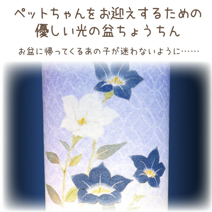 ペット供養 盆提灯 ライト 桔梗 青 光触媒 除菌 殺菌 防臭 国産 盆ちょうちん ブルー ペット用 ペット 盆供養 お盆 犬 猫 うさぎ かわいい おしゃれ 華やか きれい 和紙 和風 お花