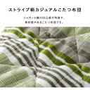 ■サイズ・色違い・関連商品■235×235cm グリーン■235×235cm レッド■225×265cm グリーン■225×265cm レッド■235×275cm グリーン■235×275cm レッド■235×290cm グリーン■235×290cm レッド[当ページ]関連商品の検索結果一覧はこちら■商品内容ジャガード織の凹凸感が特徴的な素材感があるこたつ布団です。お部屋の雰囲気気を崩さない淡い色目とカジュアルでお部屋に合いやすいストライプ柄にしました。ダイニング用のこたつ台にご使用いただけます。薄手なので折りたたんでもかさばらず、コンパクトに収納できます。部分暖房のコタツは電気代もおトクです。■商品スペック【サイズ】約235×290cm【適応サイズ】90×150× 高さ63〜68cmハイタイプのこたつ台に適応。【素材】表地ポリエステル100%【フランネル先染め ジャガード】 裏地=ポリエステル100%【フランネル】 中材=ポリエステル100%【洗濯表示】30℃以下の水温で洗濯機が使用できます。(洗濯時は洗濯ネットをご使用ください。) 干し方=日陰のつり干しがよい。【原産国】中国【配送日時指定について】・この商品は、配送希望日と時間帯をご指定可能です。・配送希望日は出荷目安(最長)の 3 - 30日後の間でご指定ください。・最短でのお届けをご希望の場合は「指定なし」を選択してください。※配送エリア(例:沖縄・離島)により、配送希望日のご指定をお受けしかねる場合がございます。■送料・配送についての注意事項●本商品の出荷目安は【1 - 3営業日 ※土日・祝除く】となります。●お取り寄せ商品のため、稀にご注文入れ違い等により欠品・遅延となる場合がございます。●本商品は仕入元より配送となるため、北海道・沖縄・離島への配送はできません。