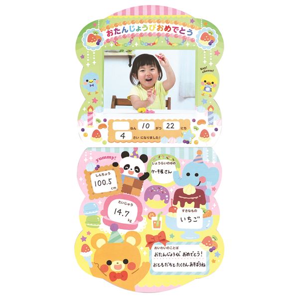 ■商品内容【ご注意事項】この商品は下記内容×20セットでお届けします。おたんじょうびカード(おかしパーティ)■商品スペック商品説明:たくさんのスイーツで誕生日を祝おう!写真と手形をかざれる!商品サイズ:207×220mm包装形態:PP袋入 包装サイズ:220×220×2重量:37g セット部品:本体×1 材質:紙販売単位:1枚原産国:中国■送料・配送についての注意事項●本商品の出荷目安は【3 - 6営業日 ※土日・祝除く】となります。●お取り寄せ商品のため、稀にご注文入れ違い等により欠品・遅延となる場合がございます。●本商品は仕入元より配送となるため、沖縄・離島への配送はできません。
