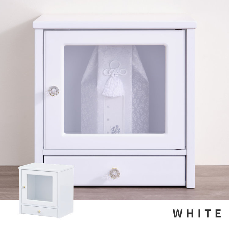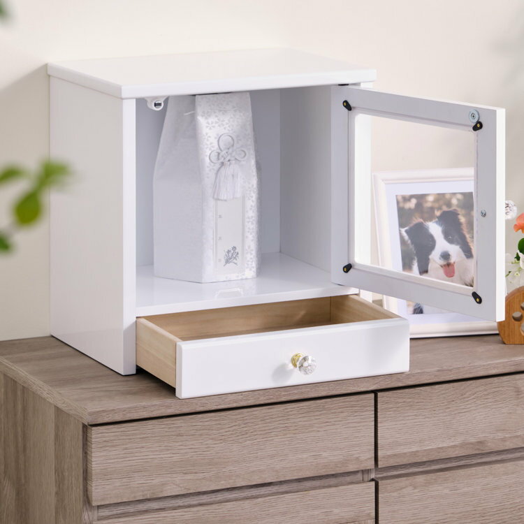 【期間限定2000円引き】ペット仏壇 ホワイト 鏡面仕上げ 幅37 リビング おしゃれ かわいい 仏壇 大きいサイズ 3寸 4寸 収納 引き出し 思い出の品 愛犬 愛猫 遺骨 供養 仏具 手元供養 フォトフレーム 家族 木製 ISSEIKI MEMORIES