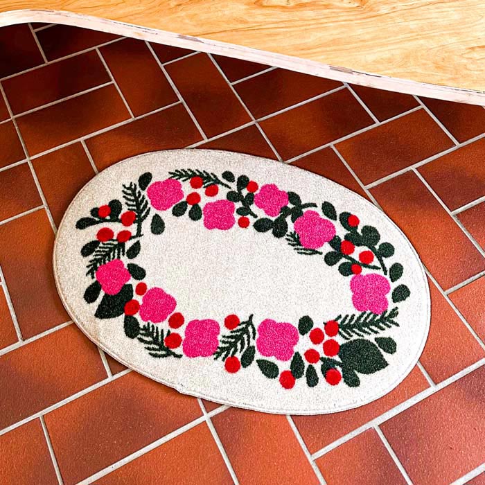 Kranssi 48.5×70cm オーバル 楕円形 北欧柄 花冠柄 インテリアマット クリーンテックス 玄関マット マット 室内用 屋内 足ふきマット 洗える 吸水 すべり止め 日本製
