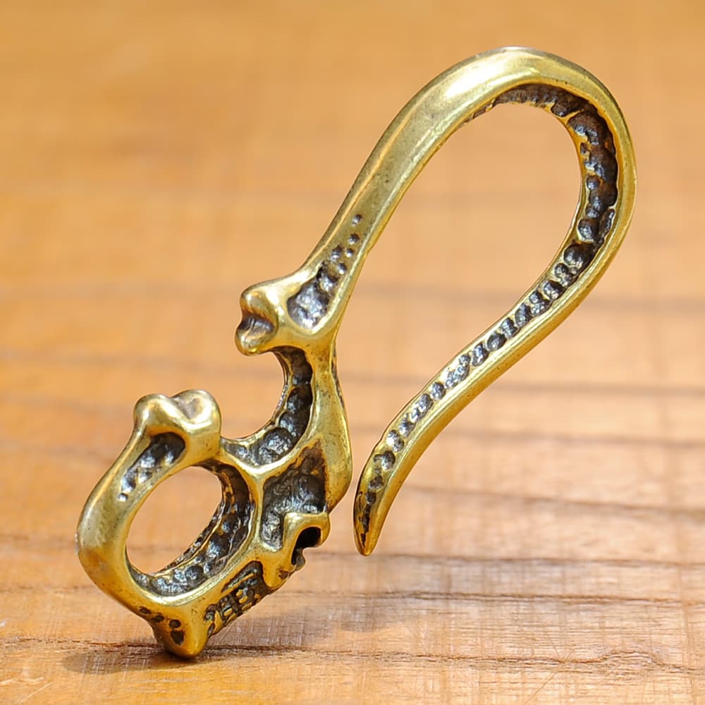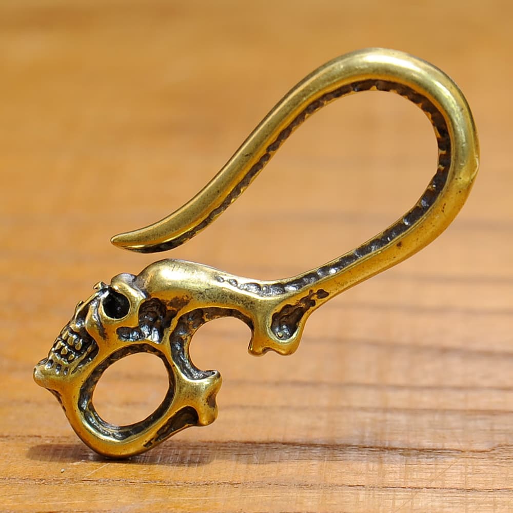 釣り針フック 真鍮 スカル 小 [ アンティーク調 ] ドクロ ガイコツ キーフック キーリング ウォレットチェーンホルダー キーチェーン 接続金具 レザークラフト資材 レザークラフト材料 クラフトフック フックパーツ ひっかけ金具 手芸 ハンドメイド パーツ 部品