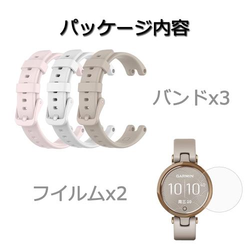 三色バンド+2枚フイルムセット 対応Garmin Lily シリコンバンド ガーミン Lily TPUフイルム シリコン 快適なデザイン 簡単取付 Garmin Lily スマート ウォッチ バンド シート(ピンク+ホワイト+グレー)