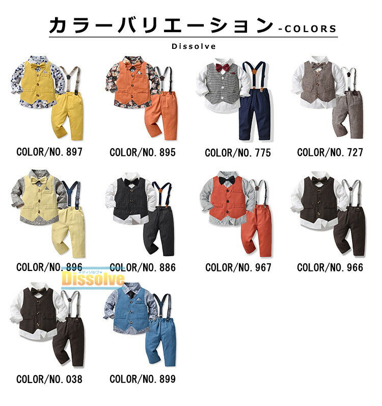 商品情報 商品名 子供服 フォーマル 3点セット 男の子 結婚式 入園式 ジュニア 長袖シャツ ベスト サスペンダー 発表会 衣装 撮影 キッズ 幼稚園 ギフト プレゼント 子ども 素材 綿・コットン カラー NO.897|NO.895|NO.775|NO.727|NO.896|NO.886|NO.967|NO.966|NO.038|NO.899サイズ 各サイズの寸法については画像のサイズ表にご参照ください。 生産国 中国 包装について 環境保護の観点から、「簡易包装」を推進しております 明細書について 当店ではエコロジーと個人情報流出防止のため、ご指示の無い限り明細書を発行しておりません。 明細書を発行ご希望の場合は個別に承らせていただきます。 お手数おかけいたしますが、ご注文時に備考欄に明細書発行希望の旨、ご入力ください。 配送について 当店は複数の保管倉庫を契約しており、複数商品をご注文の場合、商品保管倉庫により、それぞれ出荷する場合があります。 時間指定は下記よりお選びいただけます。 午前中、14-16時、16-18時、18-20時、19-21時 在庫に関するお知らせ 当社では複数店舗を運営し他店舗でも販売しております為、万一、商品の品切れ等によりお届けできない場合、 またはお届けが遅れる場合がございます。 その際には当方よりメールにてご連絡を差し上げま すが、あらかじめご了承下さいますようお願い致します。 注意 ※日本サイズ表示ではなく、ご購入前にぜひともサイズ表をご確認ください。 ※機械による生産過程により、生地を織る際の糸の継ぎ目や多少のほつれなどが生じている場合がございます。 ※サイズは平置き、メジャー採寸を行っております。 実寸は商品によって若干の誤差が生じる場合がございます。予めご了承ください。 ※お客様のご覧になられますパソコン機器及びモニタなどの違い、また室内、室外での撮影により実際の商品素材の色と相違する場合もありますのでご了承下さい。 ※※ベルト、飾りやインナーなどは含みません。