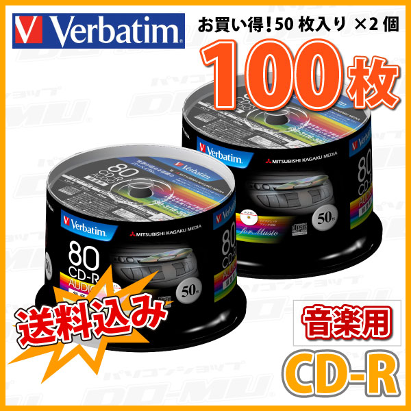 【エントリーでポイント10倍】【音楽用 録音用 CD-R】 Verbatim(バーベイタム) CD-R 音楽用 700MB 1-48倍速 ワイドホワイトレーベル 【100枚(50枚×2個)スピンドルケース】 (MUR80FP50SV1 2個セット) 【KSW】