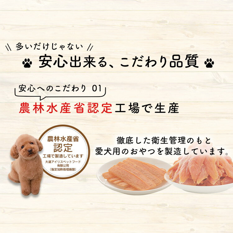 超大袋タイプのジャキーです。 中身は小袋でわかれています。 日本の農林水産省が認定した工場でつくりました。 愛犬の健康に配慮し、無着色&低脂肪にしています。 手で小さくちぎれるので、ご褒美にぴったりのあらびきささみタイプです。 全犬種用。 ※リニューアルがある場合、パッケージとサイトに掲載されている情報の一部が異なる場合がございます。 ●内容量 200枚(50枚×4) ●パッケージサイズ(cm) 幅約39×高さ約34 ●原材料 肉類(鶏ささみ、鶏肉)、でん粉、食塩、グリセリン、プロピレングリコール、保存料(ソルビン酸K)、酸化防止剤(ビタミンC)、発色剤(亜鉛酸Na) ●成分 たんぱく質35.0%以上、脂質2.5%以上、粗繊維1.0%以下、灰分8.0%以下、水分18.0%以下 ●エネルギー 100gあたり305kcal ●与え方(愛犬の体重:一日の給与量) 幼犬:1/2枚 以内 超小型犬(5kg以下):1枚 以内 小型犬(5〜10kg):4枚 以内 中型犬(10〜20kg):7枚 以内 大型犬(20〜40kg):13枚 以内 ※1日2〜3回に分けてお与えください。(主食ではありません) ※あくまでも目安です。愛犬の様子を見ながら調節してください。 ※幼犬、超小型犬にはハサミ等で小さく切ってからお与えください。 最強翌日配送対象商品に関するご案内 最強翌日配送対象商品・対象地域に該当する場合は最強翌日配送マークがご注文カゴ近くに表示されます。 最強翌日配送可能なお支払方法は【クレジットカード、代金引換、全額ポイント支払い】のみとなります。 下記の場合は最強翌日配送対象外となります。 ・15点以上ご購入いただいた場合 ・時間指定がある場合 ・ご注文時備考欄にご記入がある場合 ・決済処理にお時間を頂戴する場合 ・郵便番号や住所に誤りがある場合 ・最強翌日配送対象外の商品とご一緒にご注文いただいた場合 ・お届け先住所文字数が40文字以上の場合 ▼お得な情報やクーポン配信中▼