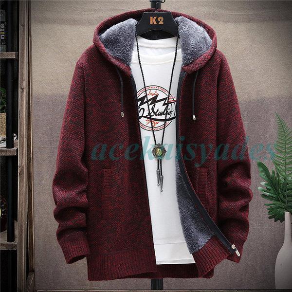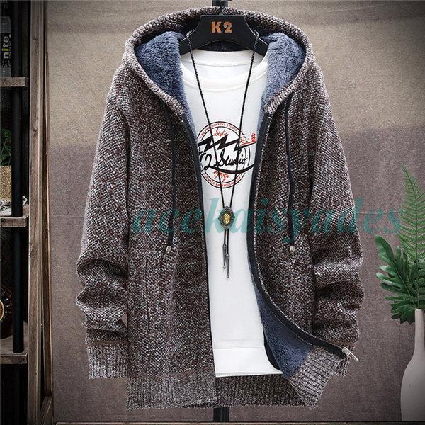 カーディガン メンズ ニット パーカー ブルゾン 裏起毛 コーディガン セーター フード付き 暖かい 秋 冬 ジャケット 厚地 無地 防寒