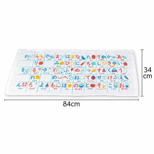 ※取寄せ商品のため、メーカーに在庫があれば1週間程度でお届けいたします。・ご注文後のキャンセルはお受けできません。・メーカー欠品時はお待ちいただくこともございます。・メーカー廃番の場合がございます。ご了承ください。●本商品は「分納」商品となります。他の商品と同梱での発送は出来かねますので、ご了承ください。●ひらがなが覚えられるかわいいタオル!●入数:1個●商品サイズ:340×840mm●セット内容:本体×1●商品重量:65g●材質:綿100%●生産国:中国●JANコード:4521718117911※商品コード:764-02753