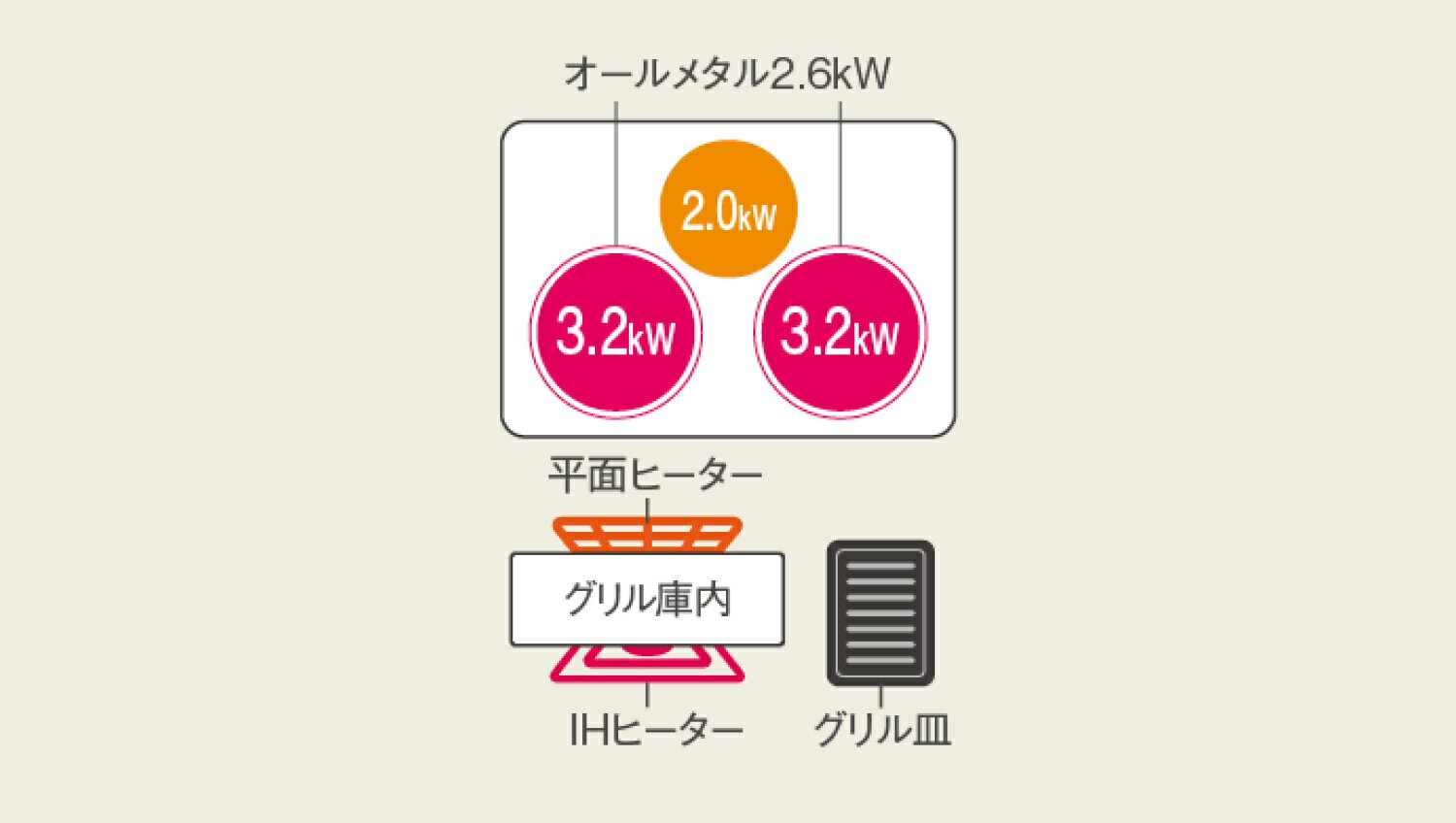 ご購入前に必ずメーカーホームページにて商品の詳細をご確認下さい。また、商品に関して何かご不明な点は下記までお問い合せ下さい。パナソニック商品専用ご相談窓口(フリーダイヤル)0120-878-365(フリーダイヤルに接続できない場合)06-6907-1187※メーカーのサポート体制は予告無く変更・終了する場合がございます。機能性とデザイン性を兼ね備えたハイグレードモデル■進化したIH&遠赤 Wフラット ラクッキングリル 手早くおいしく、お手入れラクラク ■凍ったままIHグリル 冷凍保存した食材を、解答の手間なくおいしく焼き上げ ■焼き物アシスト 温度・時間を自動設定、調理のタイミングもお知らせ ■左右オールメタル対応IH、後ろIHは鉄・ステンレスのフライパン・鍋のみ使用できます。 ■自動調理 ■オーブン調理 ■手動調理 ■鍋をグリルに入れて調理 ■光・揚げ物温度調節 ■光火力センサー ■焼き物温度調節 ■自動湯沸し ■自動炊飯 ■光るリング ■快適な操作性 ■火力10段階調整(左右IH) ■安心・安全機能 ■AIエコナビ搭載 ■電気代(目安)表示 ■レンジフード換気連動 ■キッチンポケットアプリ ◇電源:単相200V(50-60Hz共用) ◇総消費電力:5800W/4800W(切換式) ※待機電力:0.85W(電源スイッチ「切」の状態) ◇大きさ(約):幅748×奥行574×高さ230mm ◇質量(約):29.4kg ◇グリル庫内高さ(約):101mm ◇グリル皿 大きさ(約):幅258×奥行394mm 質量(約):1.2kg