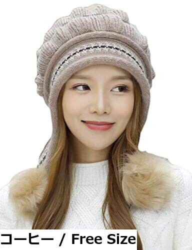 【送料無料】[Gergeous] レディース ニット帽子 ケーブル ポンポン 手袋 ニットキャップ 冬物 防寒対策 雪遊び あったか ニット帽(FREESIZEワインレッド)