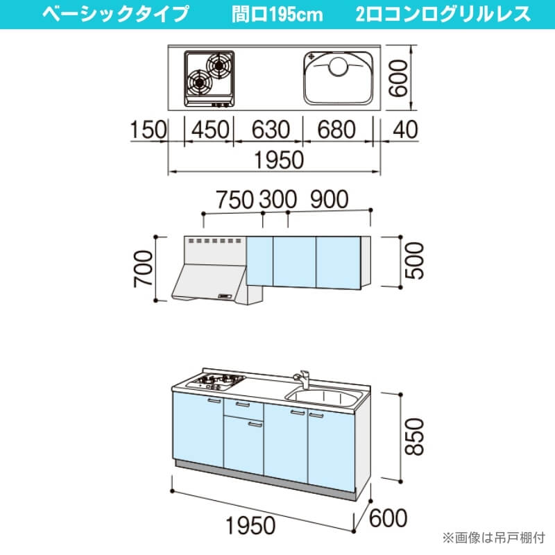 【11月はエントリーでP10倍】 コンパクトキッチン ティオ Tio LixiL 壁付I型 ベーシック W1950mm 間口195cm(グリルなし2口コンロ用) グループ3 リクシル システムキッチン フロアユニットのみ ドリーム