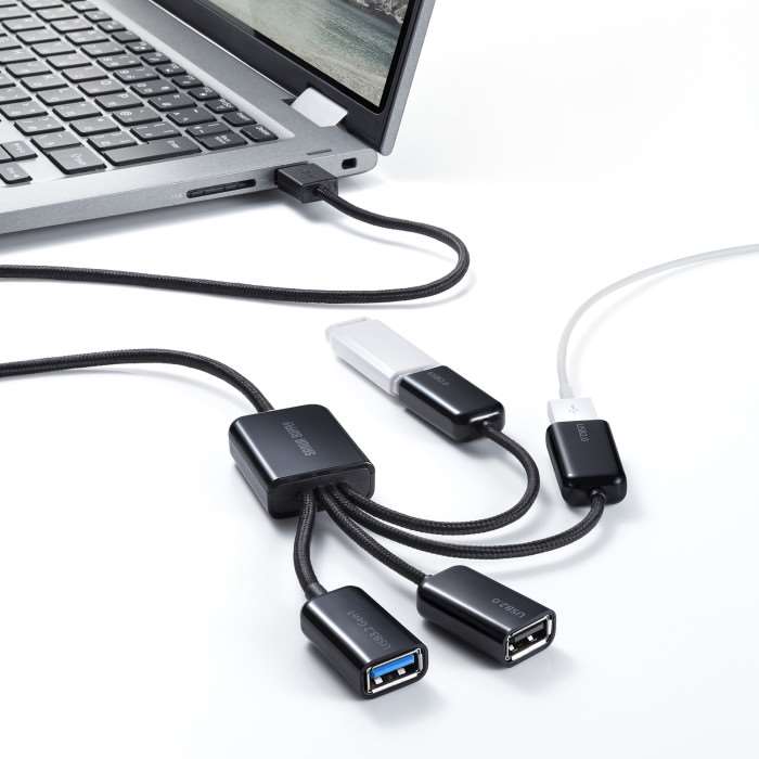 【代引不可】USB3.2 Gen1+USB2.0 コンボハブ(4ポート)4分岐 USBハブ 延長ケーブルのように使える サンワサプライ USB-3H436BK
