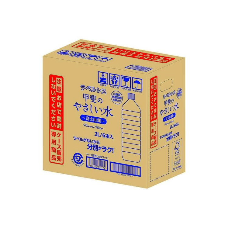 【12本】甲斐のやさしい水 富士山麓 ラベルレス 水 2リットル 備蓄水 ミネラルウォーター ラベルレス 国産 防災 軟水 PFASフリー 富士山 【代引不可】