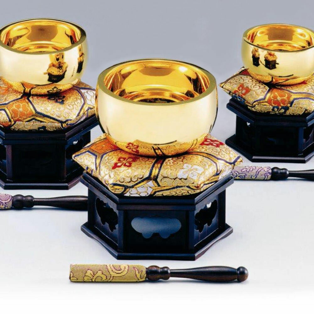 仏具 18金 イエローゴールド おりん 直径10.5cm 3.5寸 重量470g りん棒・りん台・座布団・桐箱付属 財務省造幣局検定マーク(ホールマーク)入り 受注生産|K18YG k18 18k 貴金属 御鈴 オリン 仏壇 法事 法要 祭事 置物 メモリアル ホールマーク入り