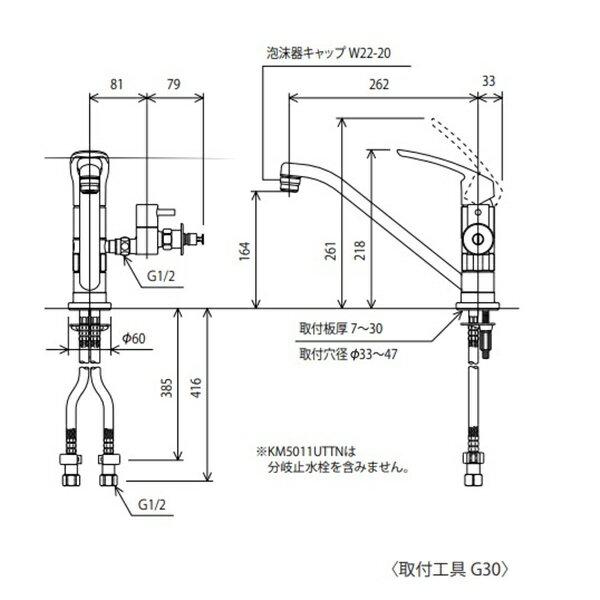 KVK 【KM5011UTTN】 取付穴兼用型・流し台用シングルレバー式混合栓 混合水栓 キッチン
