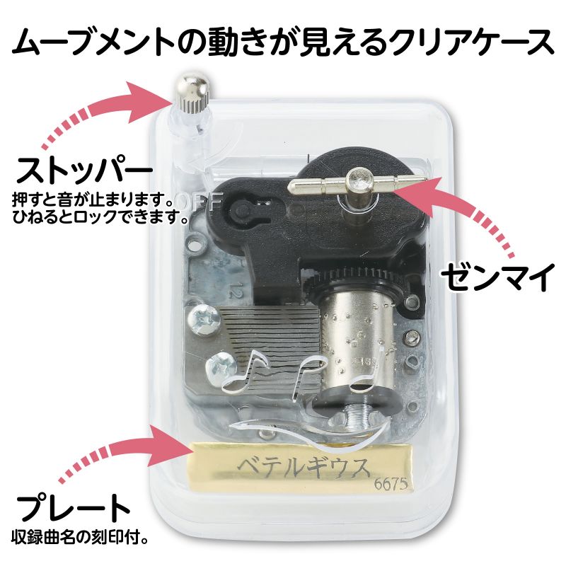 ギフトサービスについて【メール便(定形外郵便)の配送について】※こちらの商品は、[メール便(定形外郵便)]での発送となります。※他商品との同梱された場合は、[宅配便]での発送となり通常の送料が掛かります。※[他商品との同梱][代金引換][配達日時指定]でのご注文をお受けできません。※原則ポスト投函となります。通常の[宅配便]と違い配達までのお時間が掛かる場合があります。美しい音色を奏でるコンパクトオルゴール!■品名 :オルゴール クリスタルハーモニー ベテルギウス■品番:006675■JANコード:4521718066752■メーカー名:株式会社アーテック■セット内容:本体のみ■重量:107g■材質:PS■完成サイズ:60×72×55mm(ストッパー下げ時:高さ51mm)あの話題曲「ベテルギウス」のオルゴールです。ゼンマイを巻くだけで美しいメロディーが響き、透明ケース越しにムーブメントの動きも楽しめます。小型で扱いやすく、木工や粘土作品と組み合わせたオリジナルクラフトにもおすすめです。商品特徴一覧【Artec(アーテック)/学校教材・教育玩具 → 図工・工作・クラフト・ホビー → 工作・クラフト】、アーテック、Artec、6675、図工・工作・クラフト・ホビー、工作・クラフト、オルゴール、ベテルギウス、優里、コンパクト、透明ケース、クリアケース、クリア素材、ゼンマイ、音楽雑貨、インテリア、ギフト、プレゼント、卒業記念、卒園記念、工作、木工作、クラフト、記念品、、、4521718066752、通信販売、通販、販売、買う、購入、お店、売っている、ショッピング【アーテック オルゴール クリスタルハーモニー ベテルギウス (006675)】広告文責(有)イースクエアTEL:0120-532-772美しい音色を奏でるコンパクトオルゴール!■品名 :オルゴール クリスタルハーモニー ベテルギウス■品番:006675■JANコード:4521718066752■メーカー名:株式会社アーテック■セット内容:本体のみ■重量:107g■材質:PS■完成サイズ:60×72×55mm(ストッパー下げ時:高さ51mm)あの話題曲「ベテルギウス」のオルゴールです。ゼンマイを巻くだけで美しいメロディーが響き、透明ケース越しにムーブメントの動きも楽しめます。小型で扱いやすく、木工や粘土作品と組み合わせたオリジナルクラフトにもおすすめです。※お客さま都合による、ご注文後の[キャンセル][変更][返品][交換]はお受けできませんのでご注意下さいませ。※当店では、すべての商品で在庫を持っておりません。記載の納期を必ずご確認ください。※ご注文いただいた場合でもメーカーの[在庫切れ][欠品][廃盤]などの理由で、[記載の納期より発送が遅れる][発送できない]場合がございます。その際は、当店よりご連絡させていただきます。あらかじめご了承ください。※リニューアル等により パッケージ、仕様、セット内容 が変更になる場合がございます。予めご了承下さい。【メール便(定形外郵便)の配送について】※こちらの商品は、[メール便(定形外郵便)]での発送となります。※他商品との同梱された場合は、[宅配便]での発送となり通常の送料が掛かります。※[他商品との同梱][代金引換][配達日時指定]でのご注文をお受けできません。※原則ポスト投函となります。通常の[宅配便]と違い配達までのお時間が掛かる場合があります。こちらの商品は【お取り寄せ(5〜7営業日以内に発送予定)】となります。あらかじめご了承くださいませ。