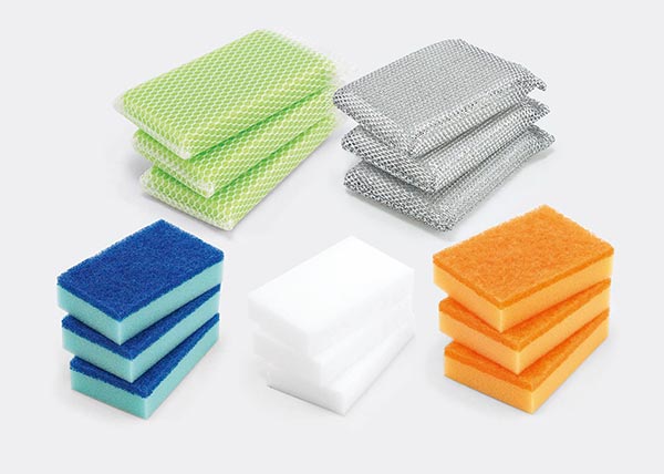 ・4種のスポンジで用途いろいろ。 ・ボリュームたっぷりの15個セット。 ・買い足しいらずで大満足!食器洗いだけでなく、 おそうじにも。 【商品サイズ】 2層スポンジ(オレンジ)/60×100×25mm 2層スポンジ(ブルー)/60×100×25mm メラミンスポンジ/60×100×20mm ネットスポンジ/70×140×20mm アルミネットスポンジ/80×120×20mm 【商品重量】 2層スポンジ(オレンジ)/4g 2層スポンジ(ブルー)/4g メラミンスポンジ/1g ネットスポンジ/5g アルミネットスポンジ/7g 【材質】 ポリウレタン、ポリエステル メラミン樹脂、アルミ蒸着フィルム 【仕様】 セット内容/ 2層スポンジ6個(オレンジ3個、ブル-3個) メラミンスポンジ3個 ネットスポンジ3個、アルミネットスポンジ3個)
