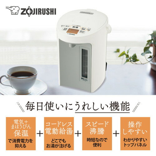 象印マホービン CV-GV30-WA 電気ポット ホワイト CVGV30WA