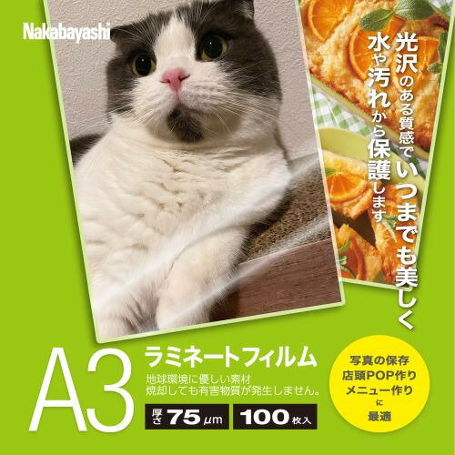 ナカバヤシ LPR-A3E2-75 ラミネートフィルム75um A3サイズ100枚