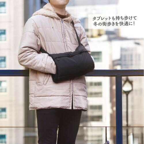 ナカバヤシ CB-287BK キャリングバッグ 11インチ タブレット対応 ブラック発売日:2025年12月下旬●タブレットを持ち歩けるハンドウォーマーバッグタブレットを持ち歩けて、手を差し込みとほっとする暖かさ●タブレットポケットは11インチサイズまでを収納できます。●円筒状のハンドウォームポケット。内側は暖かなボア素材。●小物を収納しやすいファスナー付きフロントポケット。 【仕様】本体寸法:約W315×D45×H210mm重量:約220g参考収納サイズ:約W300×H200mm材質:ポリエステル、PP