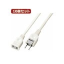 YAZAWA 10個セット耐トラ付延長コード Y02101WHX10