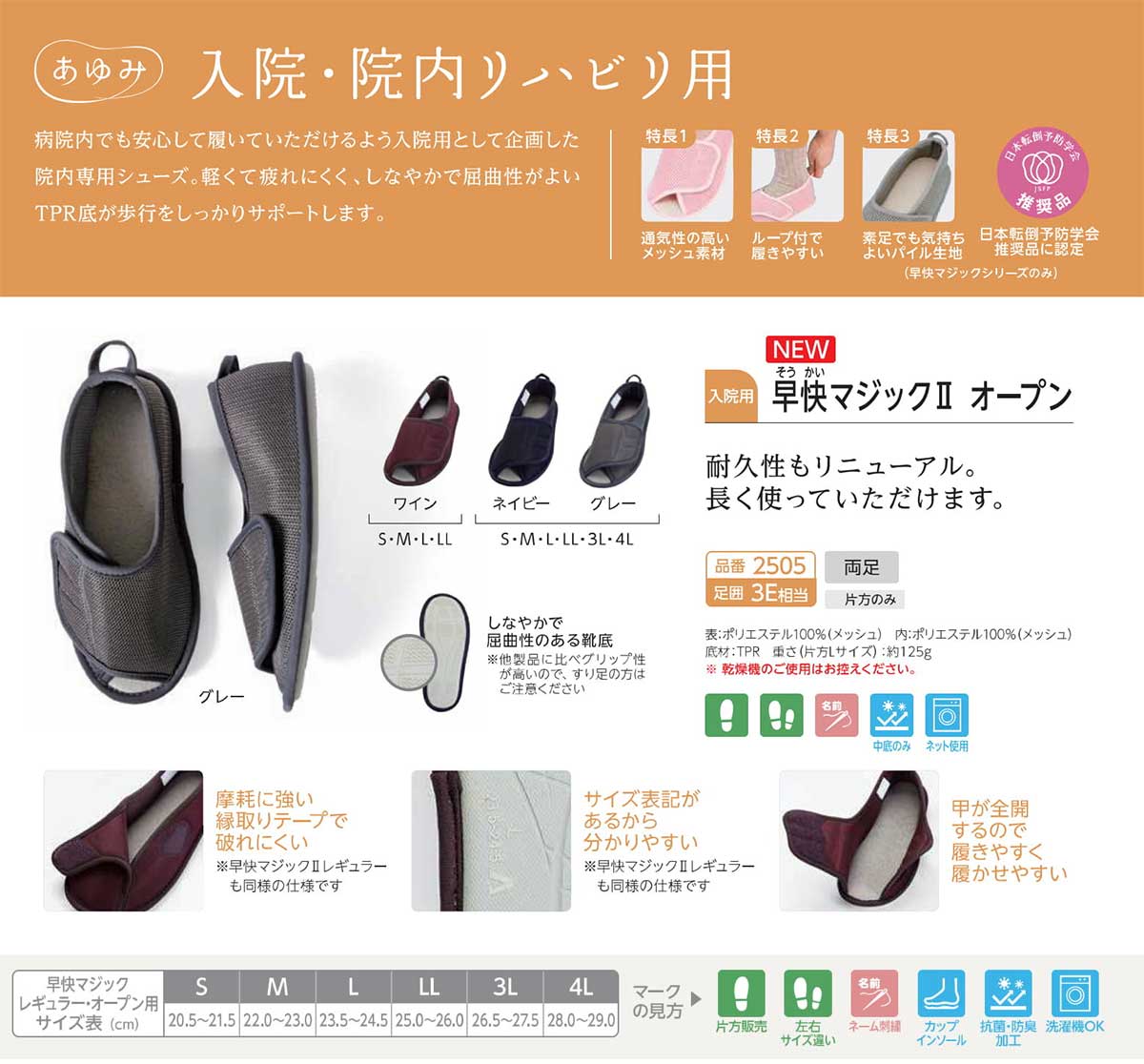 両足販売 徳武産業 あゆみシューズ 早快マジック2 オープン 2505