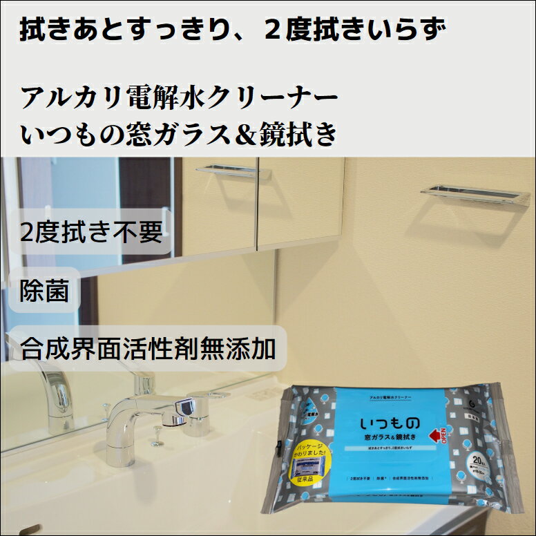 アルカリ電解水クリーナー いつもの 窓ガラス&鏡拭き 20枚入り×12個 ALP-5 2度拭き不要 除菌 合成界面活性剤無添加 窓ガラス 鏡 手垢 とびちり 鏡拭き ガラス拭き 拭き おそうじシート ガラスクリーナー アルカリ電解水 シート 掃除シート ガラス用 電解水 ほこり取り