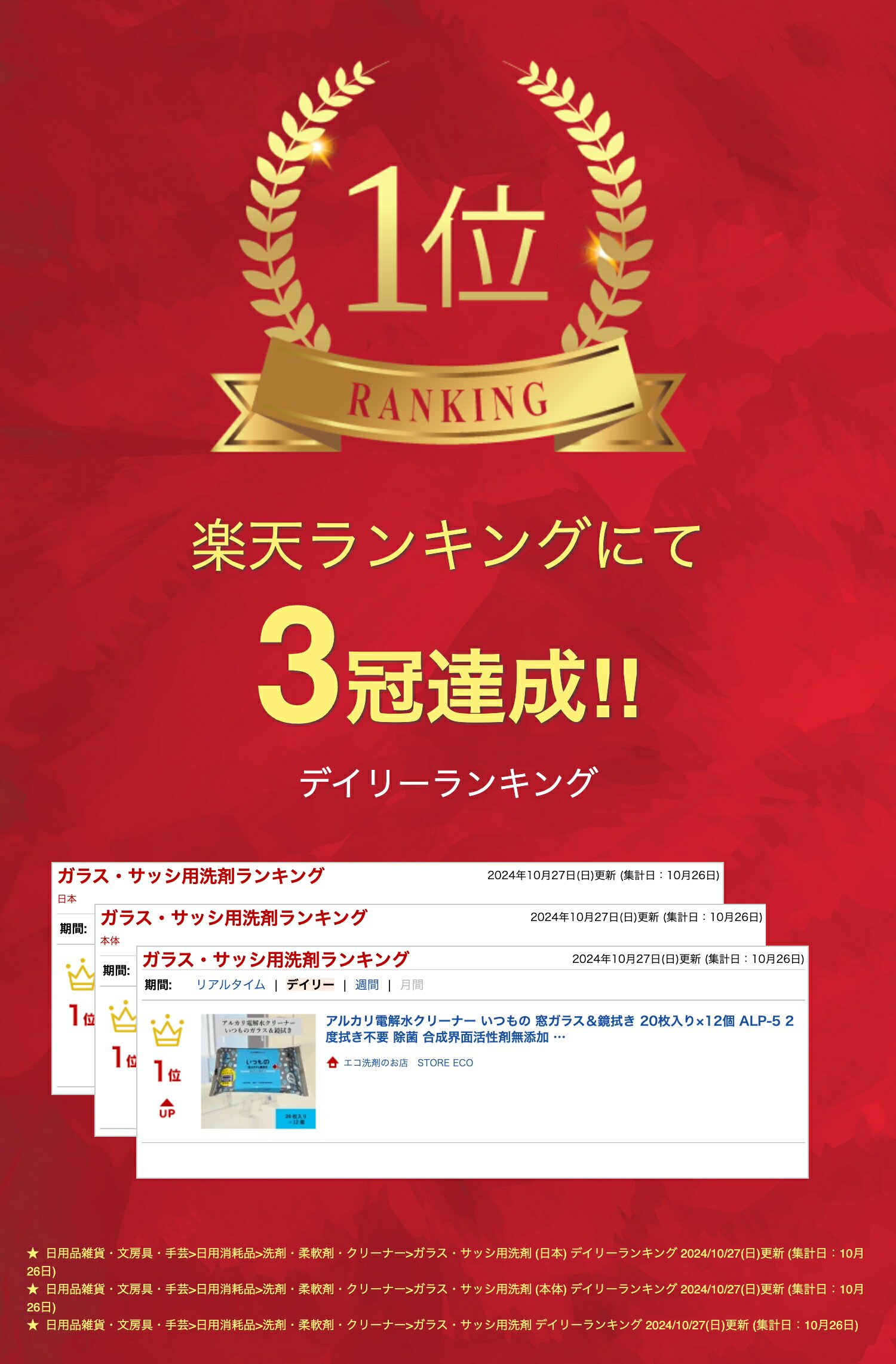 ■ 拭き後すっきり、2度拭きいらず アルカリ電解水クリーナー いつもの 窓ガラス&鏡拭き ● 2度拭き不要 ● 除菌 ● 合成界面活性剤無添加 ■ 水を電気分解して得られるアルカリ電解水を使用しています 【こんな場所に】 窓ガラス 鏡 【こんな汚れに】 砂ほこり 手垢 とびちり 手垢 ● 水を電気分解して得られるアルカリ電解水を使用。 ● アルカリ電解水の働きで汚れをしっかり落とします。 ● 発酵エタノール配合で衛生的。 ● ベタつきがなく、すっきりとした拭きあがり ■ ご使用方法 表面のシールをめくり1枚づつ取り出してご使用ください。 ■ アルカリ電解水とは ● 水(H2O)を電気分解することで水酸化イオン(OH-)を多く含んだ水のこと。 ● 本品はpHの劣化を最小限に保つために特殊な電気装置を用いてpH14になるま長時間かけて濃縮。 ● アルカリ電解水は油分も分解・乳化。 他社品は【pH安定剤】 や【炭酸塩】 を添加することで、アルカリ性を維持しております。アルカリ安定剤を添加すると、使用感として“ヌルヌル感”や“白残り ”があります。 アルカリ電解水は油汚れ・皮脂汚れ・食べこぼし・血液などの酸性の汚れを中和し落とします アルカリ剤無添加の真のアルカリ電解水商品です。 ■ 成分と規格 品番 : ALP-5 商品名 : 窓ガラス&鏡拭き用クリーナー 液性 : アルカリ性 成分 : アルカリ電解水 発酵エタノール 原紙 : レーヨン、ポリエステル 入り数 : 20枚入り 商品サイズ: 約100×200×30mm シートサイズ: 約18cm × 30cm 商品重量: 約128g 関連商品アルカリ電解水クリーナー いつもの 食卓&リビング 拭き 20枚入り×...アルカリ電解水クリーナー いつもの フローリング 拭き 18枚入り×1...アルカリ電解水クリーナー いつもの 洗面所&脱衣所まわり拭き 発酵エタ...1,320円1,320円1,320円アルカリ電解水クリーナー いつもの IH&ガスコンロ 拭き 20枚入り...アルカリ電解水クリーナー いつもの電子レンジ&冷蔵庫拭き 20枚入り×...ステインアウェイ 500ml スプレー 洗剤 カーペット ソファー シ...1,320円1,320円1,320円グラスアップ 300mlスプレー ガラス 鏡 洗剤 ガラスコーティング...ナノミラーコート 260g 鏡 洗剤 鱗状痕 落とし 除去剤 ウロコ取...いつものキッチンアルコール除菌クロス 15枚入り×12個 ALP-7 ...854円4,070円1,320円V-ZEROスプレー 300ml トイレ 便座 洗剤 洗浄 清掃 除菌...バイオアクション-S 1000mlスプレー (10倍希釈液) 天然 酵...フォーミュラG-510EF 500ml スプレー 5倍希釈入り 日本テ...1,500円1,144円1,650円関連ワード: 電解水 ほこり取り ガラスクリーナー おそうじシート 窓ガラス 拭き 鏡拭き ガラス拭き アルカリ電解水 掃除シート ガラス用 アルカリ電解水 シート ミラー 鏡 ミラー 車 窓ガラス 掃除 ほこり 取り シート ほこり とり 窓ガラス 磨き 掃除 ほこり取り 道具 ほこり 掃除 お掃除シートアルカリ電解水クリーナー いつもの 窓ガラス&鏡拭き 20枚入り×12個 2度拭き不要 除菌 合成界面活性剤無添加 窓ガラス 鏡 砂ほこり 手垢 とびちり