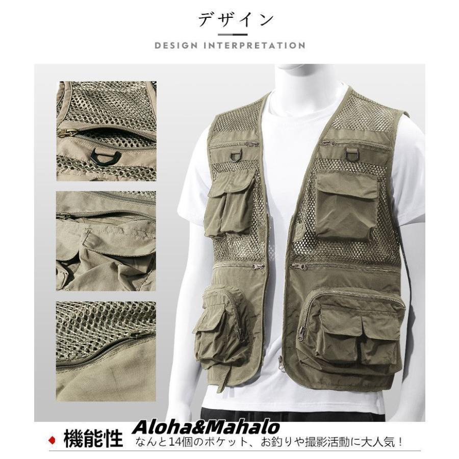 ベスト メンズ 多機能ベスト メッシュベスト 夏 お釣りベスト アウトドアベスト 作業服 マン 登山 ミリタリー ポケット多い 野外撮影 カジュアルベスト 通