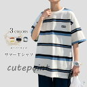 ボーダーTシャツ 半袖 夏 メンズ 半袖Tシャツ オーバーサイズ ボーダー柄 Tシャツ ドロップショルダー レトロ 爽やか 夏Tシャツ ゆったり サラサラ