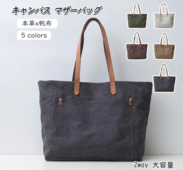 【 送料無料 】トートバッグ 本革 帆布 2way トートバック ショルダー 肩掛け マザーズバッグ ヌメ革 レザー キャンバス マザーバッグ 大きめ 大容量 A4 レディース