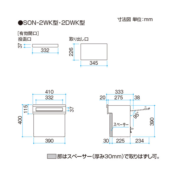 三協アルミ ポスト 埋込み型口金タイプ SON-2DWK型 ダイヤル錠付(2ブロックタイプ) ブラック(PKM) KSK
